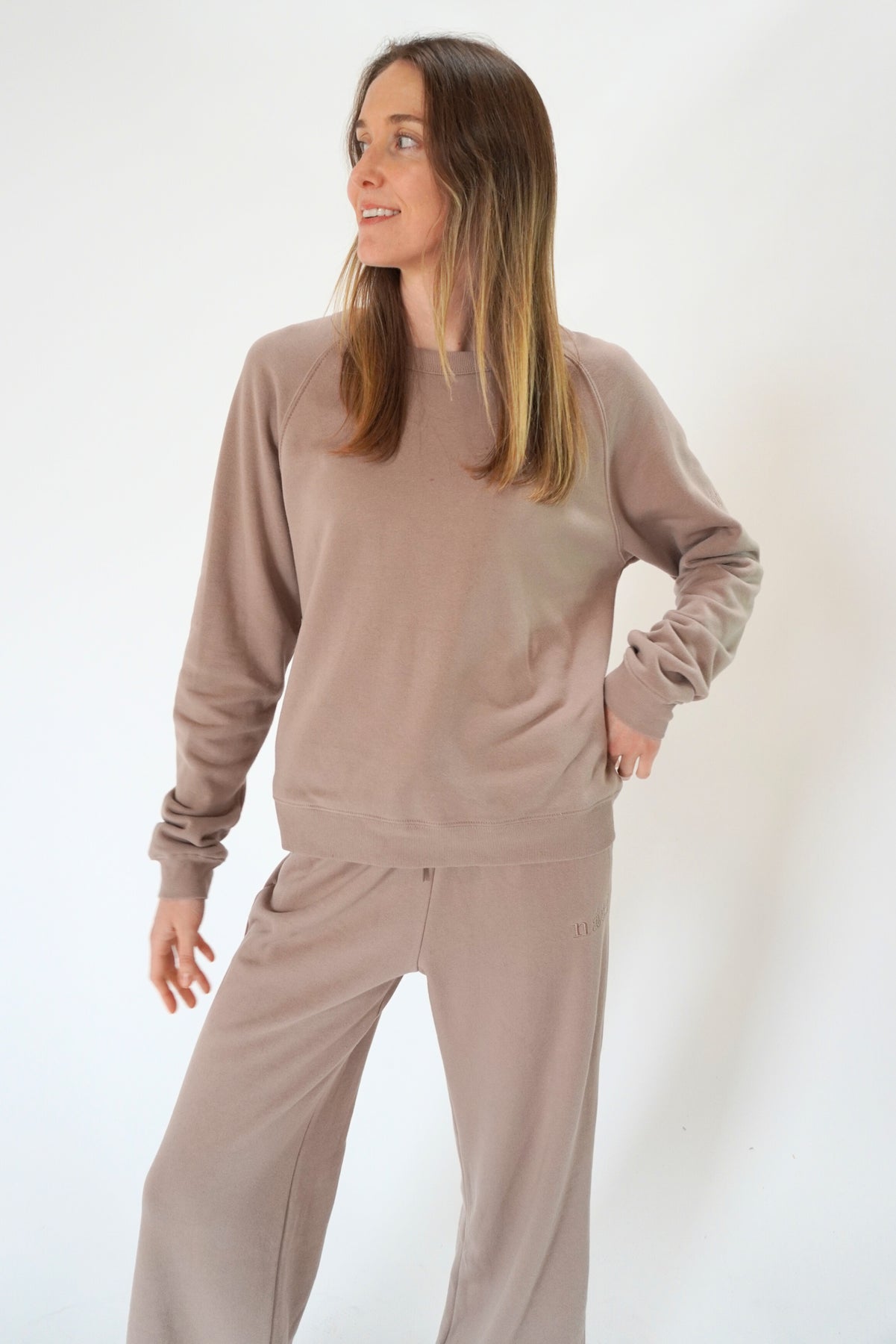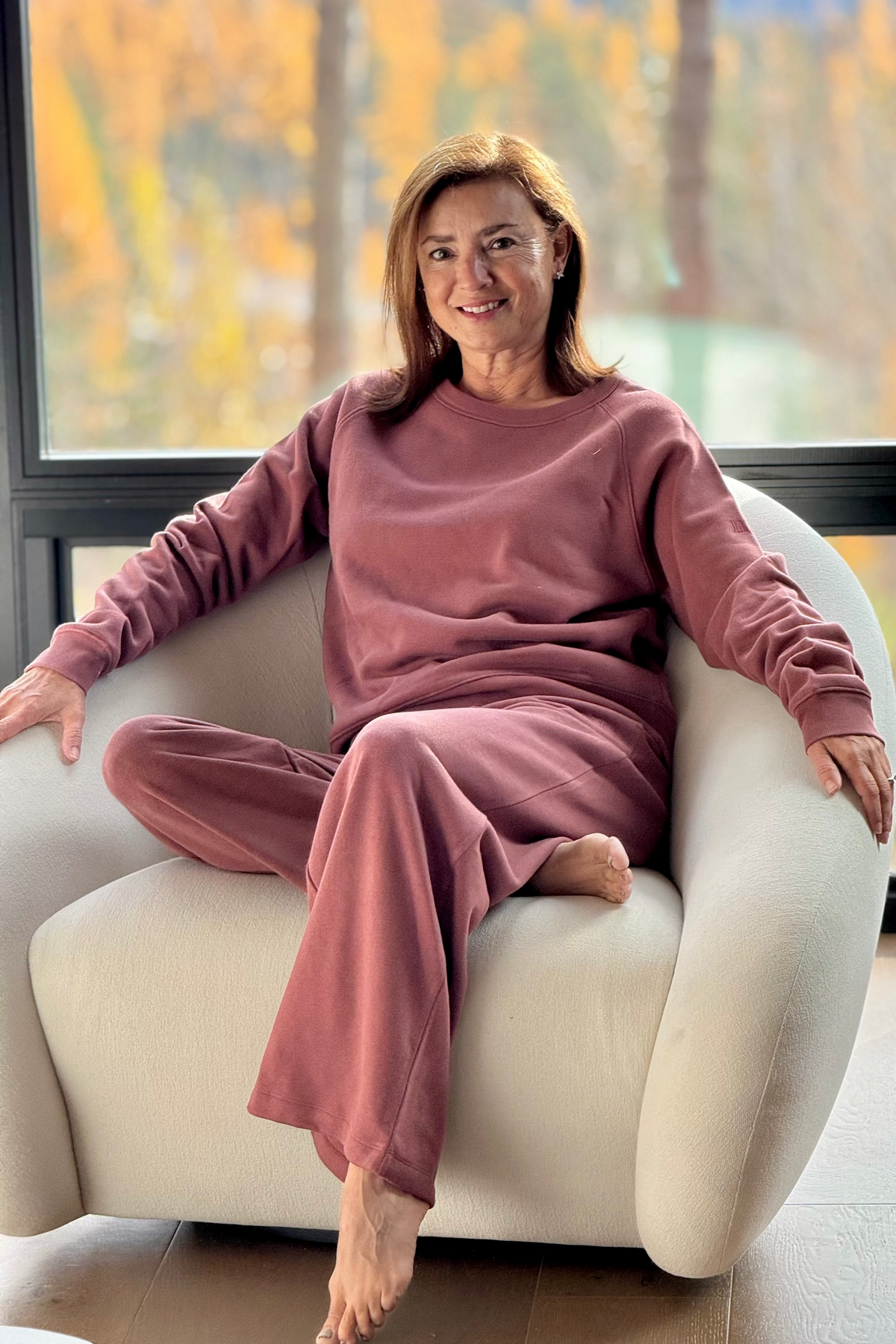Crafted with ultra-soft fleece and a brushed interior, each piece feels like a warm hug. The relaxed, wide-leg pants and easy crewneck silhouette make it the perfect set to throw over your workout look, curl up at home, or take on the go.