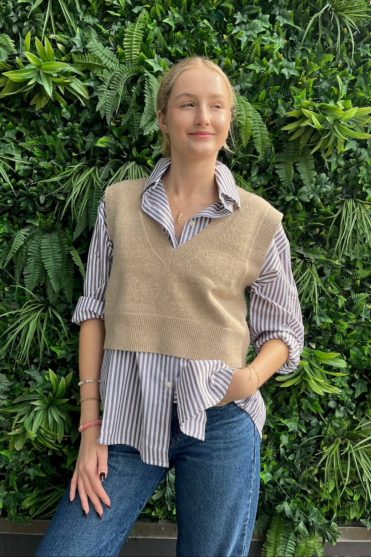 Softness and Comfort: The Laura Sweater Vest is crafted from soft materials that provide a cozy and comfortable feel. Slip into it, and you'll experience a level of softness that's second to none.