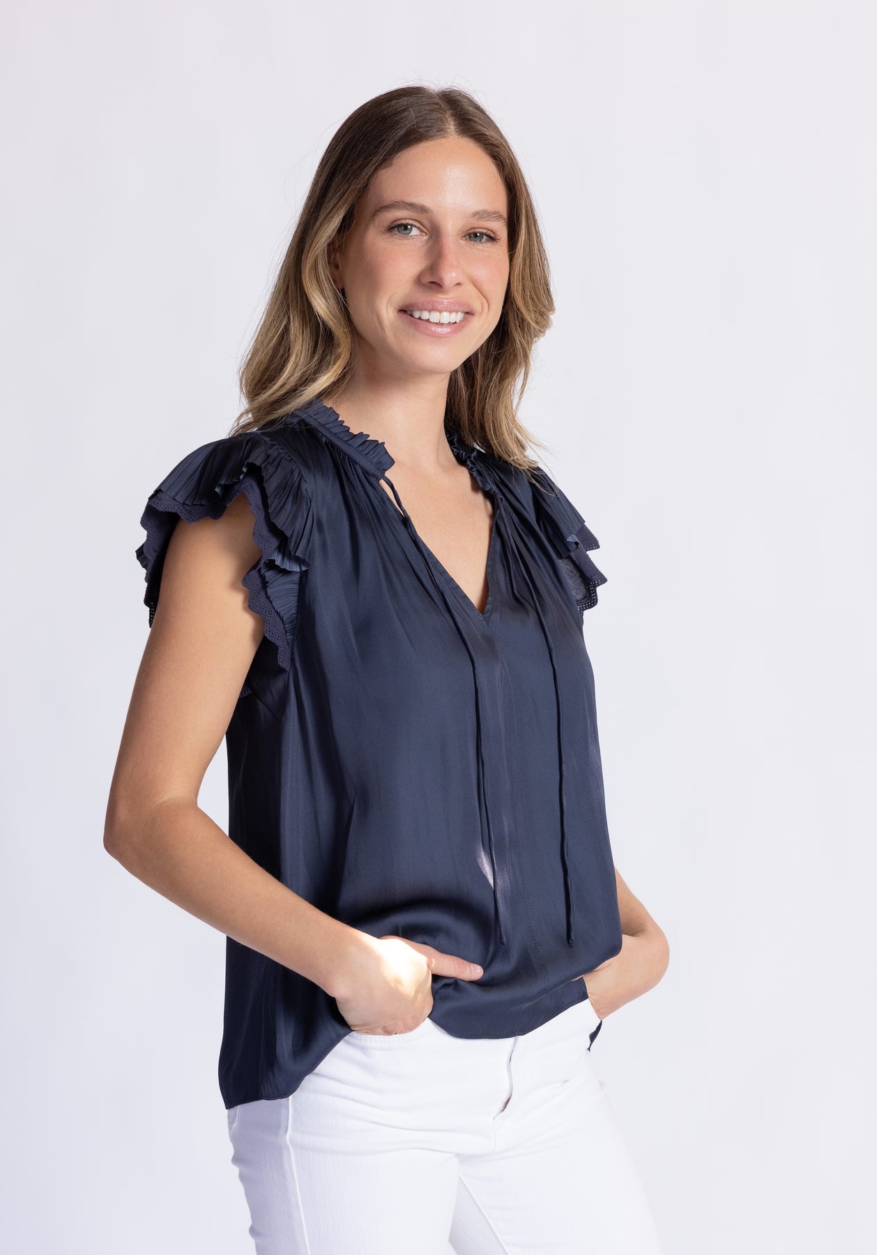 Add a touch of soft color and shine to your wardrobe with the effortless Katy Top. With its comfortable, breezy fit and silky finish, it’s an easy go-to for looking put-together in seconds.